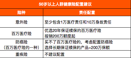 随着年龄的增大,这个年龄段的人群更容易出现身体问题,想要家庭生活更加安稳,老人的保障也需要进行考虑。一般来说,老人的保险主要在意外险、医疗险中挑选更合适的,配置方案建议如下图所示(保险配置顺序由上至下):