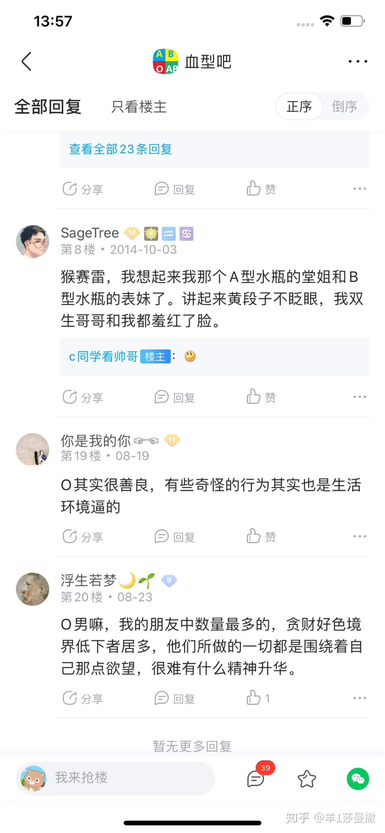 郑民生的所谓诸多不顺,在O型血人、B型血人眼里——根本不是什么大事,都是些小事,大不了换工作、换女朋友、创业!地球上约九成的人都不没试过有一帆风顺的人生,大部人在自己的人生当中都会遇到各种各样的问题和挫折,甚至不少人还被家族亲戚排挤过、陷害过、谋害过,比如本人!本人以及香港大伯,因为优秀而被家族亲戚谋害过,本人更是被他们无休无止地恶斗、造谣、打压、扯后腿,他们就是A型血的!本人其实是最有资格大喊世界不公平的,甚至是Sa人泄愤的,但本人并没有那么做!大伯完全可以Sa他们或者把他们告上法院的,可大伯也没有那么做!当然我们也没有愿谅他们,而是和他们断了亲戚关系,老死不相往来!